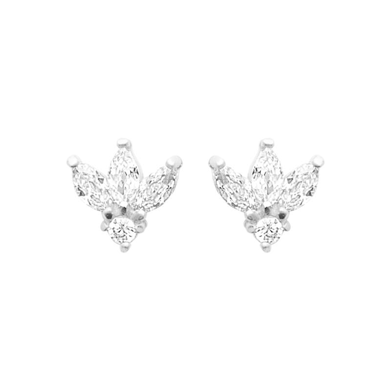 Conçues en argent 925 rhodié, elles offrent une brillance durable et une excellente résistance au ternissement. Leur design floral est composé de zirconiums taille marquise délicatement sertis, sublimés par une pierre ronde centrale pour un effet éclatant.