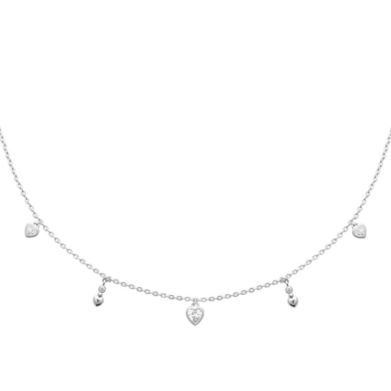 Romantique et délicat, le collier AMORIA en argent 925 rhodié illumine le décolleté avec ses petits cœurs suspendus pleins de charme.