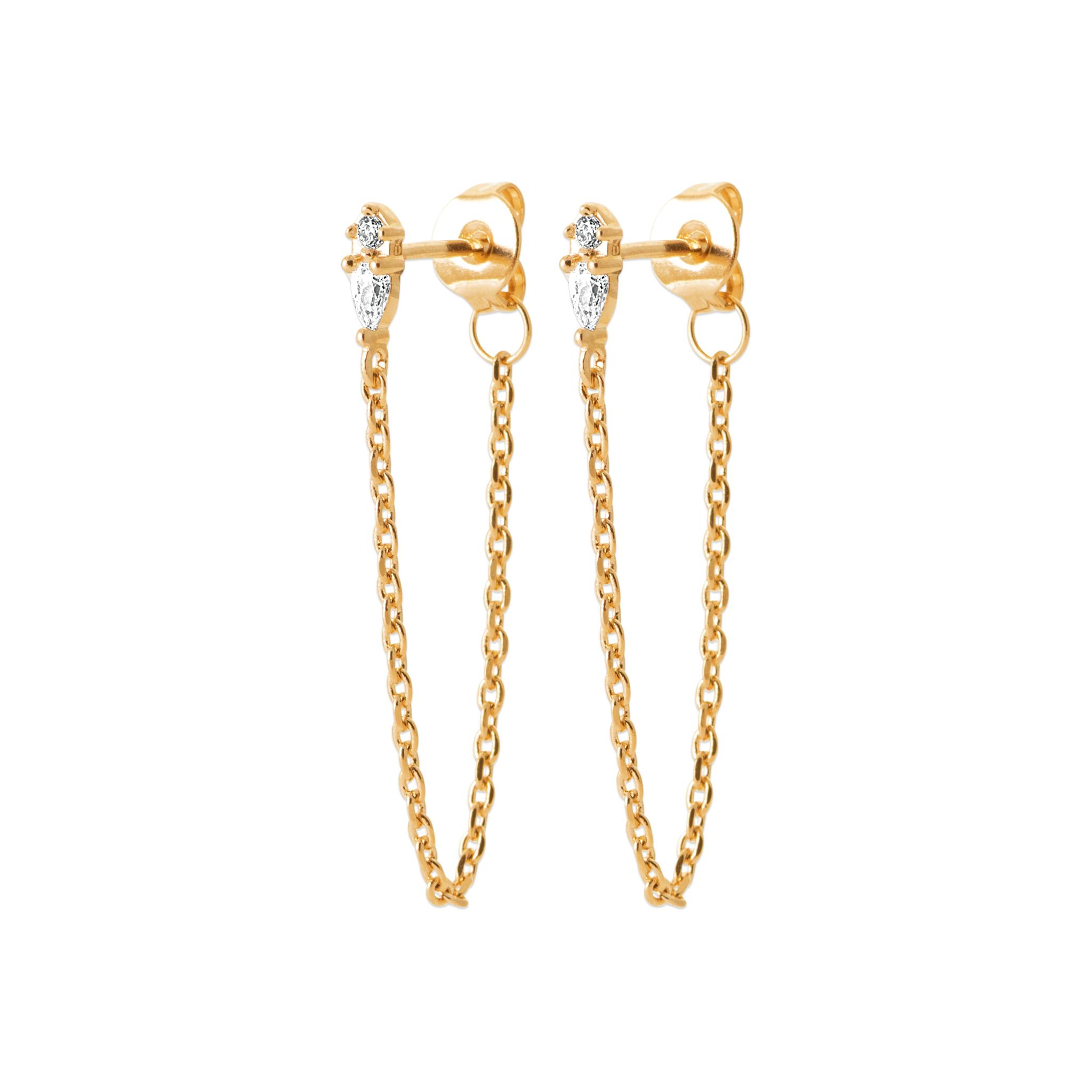 Leur pierre en zirconium délicatement sertie apporte une touche d’éclat, prolongée par une chaîne légère qui suit naturellement les mouvements.