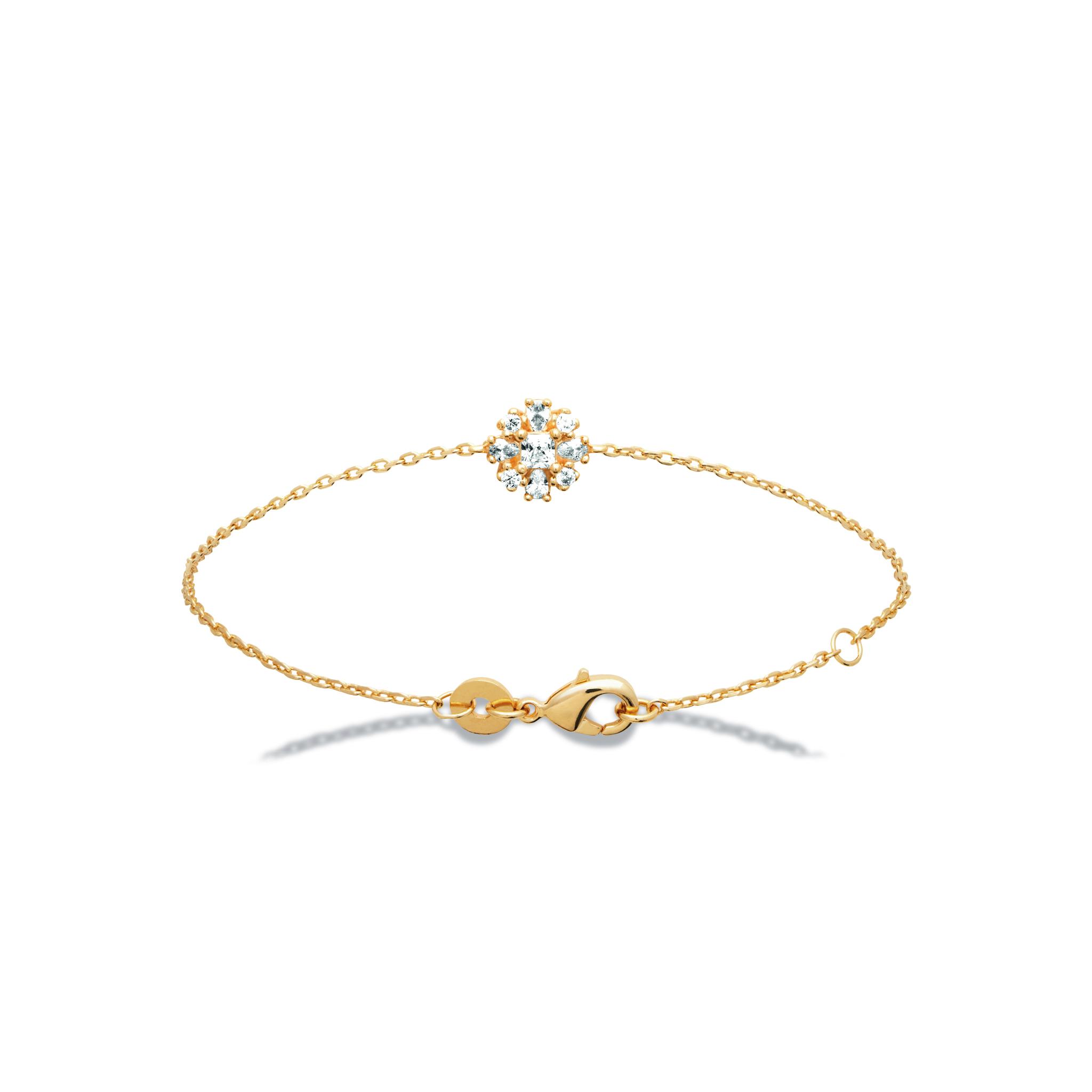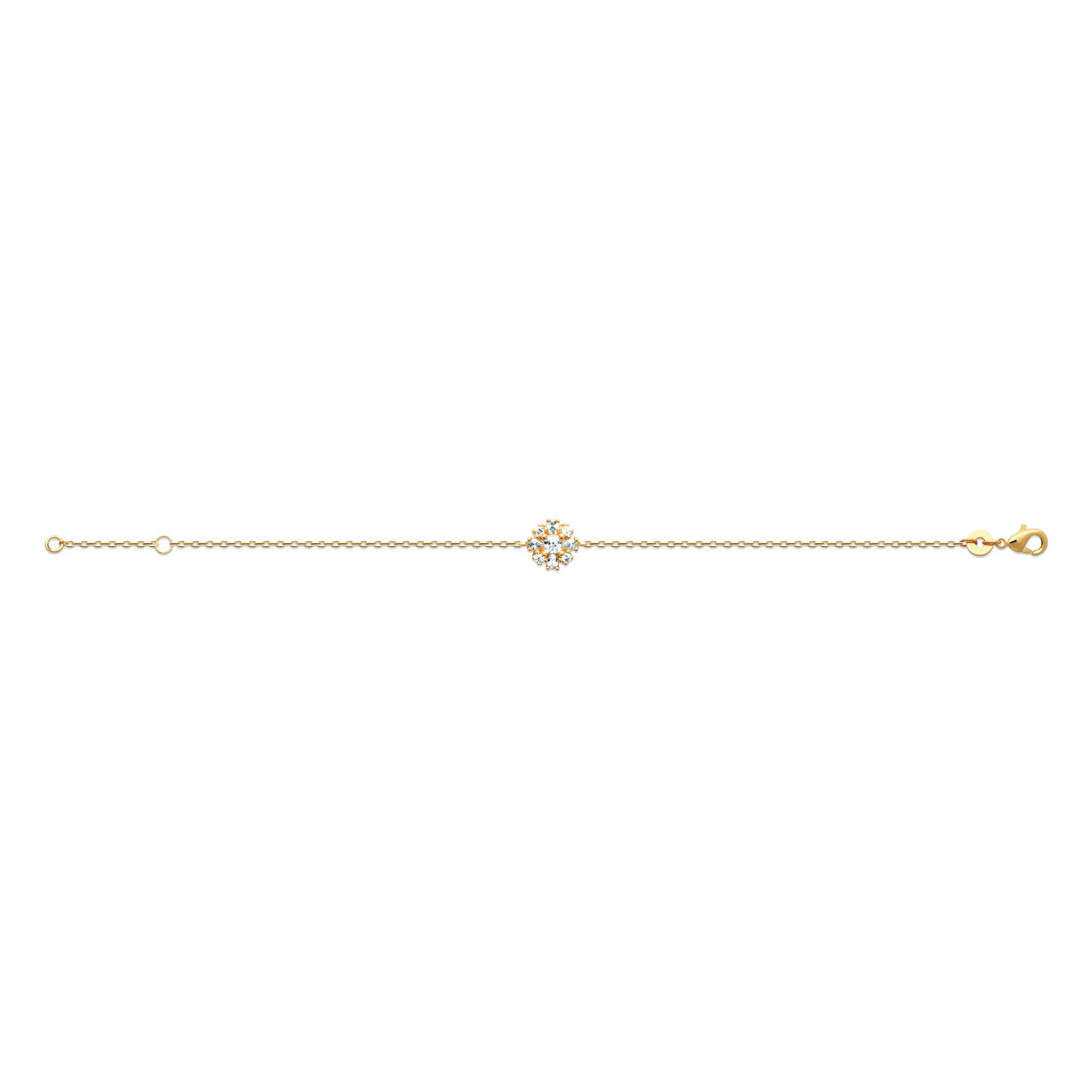 Fin et lumineux, le bracelet ÉLYSIA en plaqué or 750 (3 microns) est sublimé par un motif rosace délicatement serti de zirconiums.