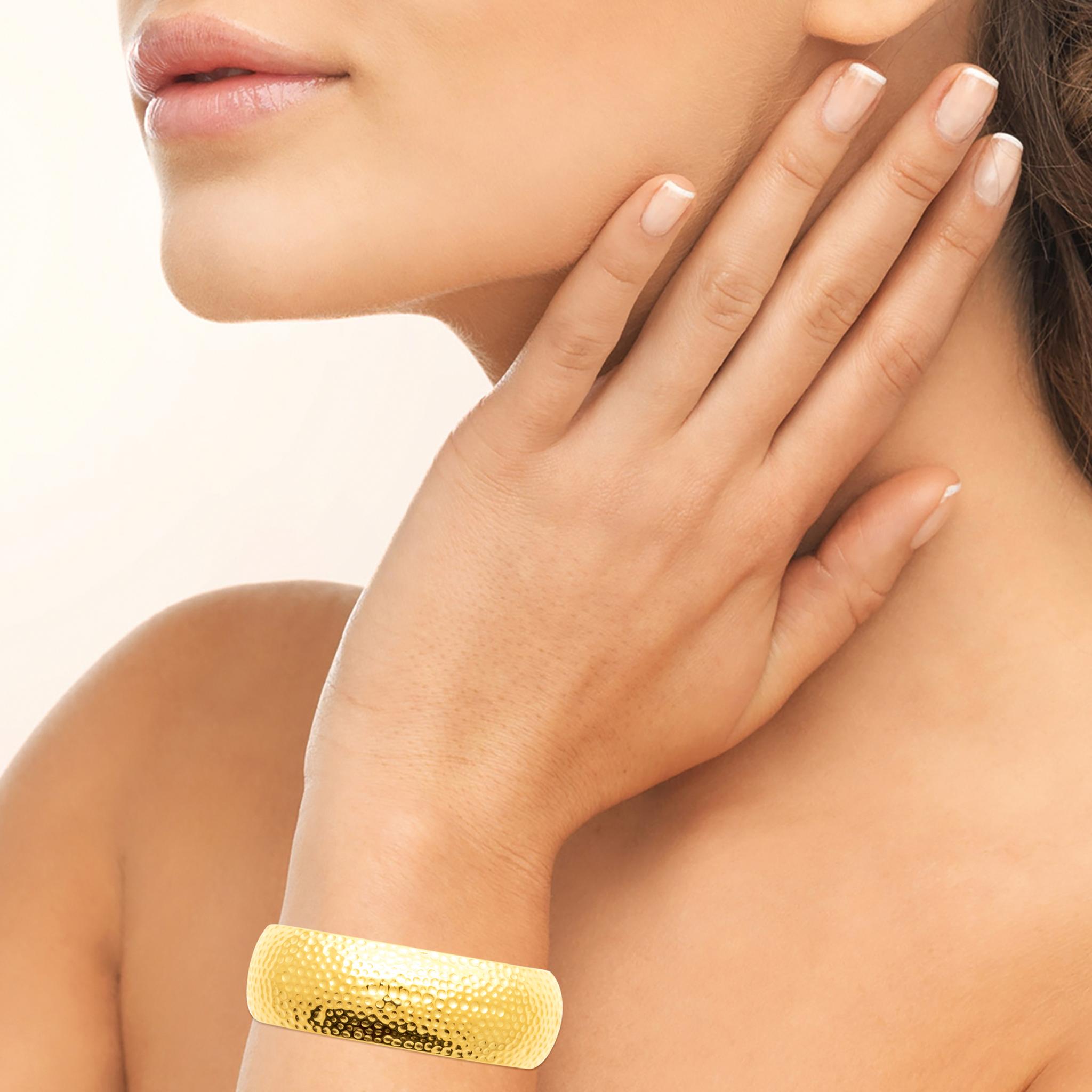 Élégant et moderne, le jonc AURYA séduit par sa texture martelée lumineuse et son design minimaliste intemporel.